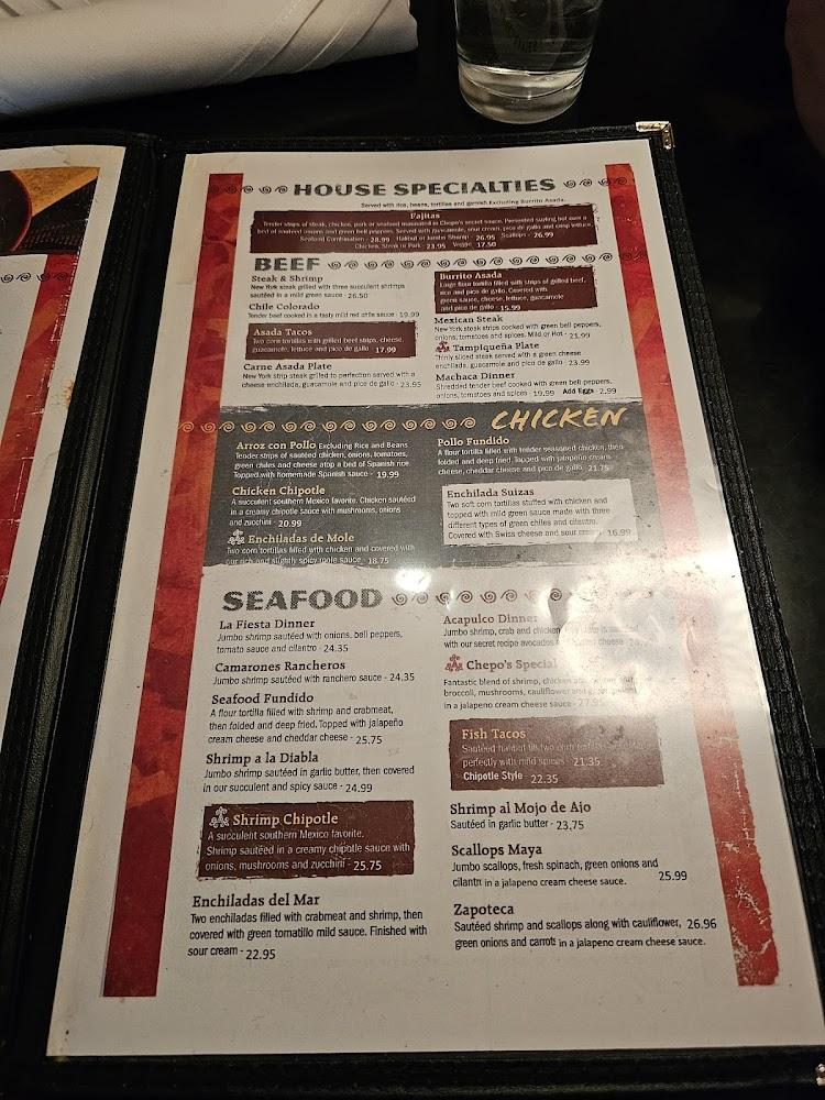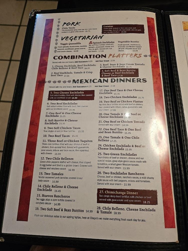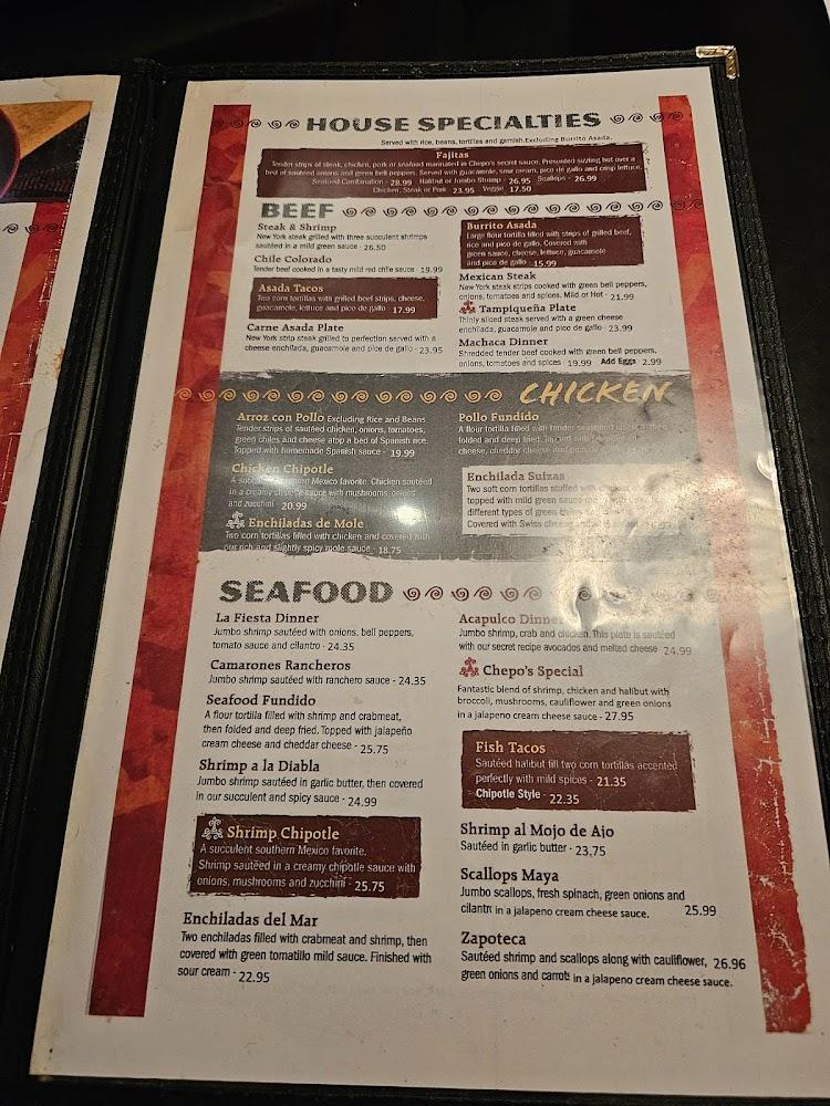Chepo's Mexican Restaurant boasts an extensive menu featuring authentic Mexican fare. Each category offers an array of dishes sure to delight food lovers. From gorditas to fajitas, there's something for everyone.